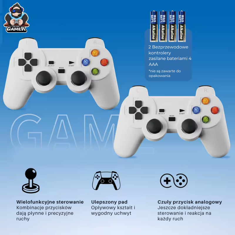 Tak, w zestawie otrzymujesz 2 bezprzewodowe pady – idealne do gry z przyjaciółmi lub rodziną.